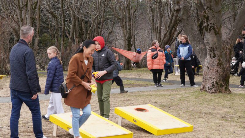 Stemningin var létt og leikandi þar sem gestir á öllum aldri nutu dagsins. Vatni var hleypt á Vatnsleikjagarðinn eftir veturinn við mikla gleði barna sem nutu þess að sulla og leika sér. DJ Mellí hélt uppi stuðinu í Skrúðgarðinum þar sem fólk slakaði á eða rólaði sér í hengirúmunum vinsælu. Fjölskyldur spreyttu sig á sandpokakasti á meðan börn á hjólum prófuðu hjólalimbó og þrautabrautir Reiðhjólabænda. Fjölskyldusmiðja Hugmyndasmiða í Gestastofunni vakti einnig mikla lukku þar sem fjöldinn allur af fjölbreyttum fuglahúsum voru byggð.