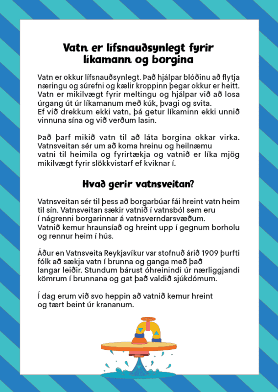Hvaðan kemur vatnið sem rennur úr krananum? Hvernig kemst það alla leiðina heim til okkar? Kynntu þér ferðalag vatnsdropans!