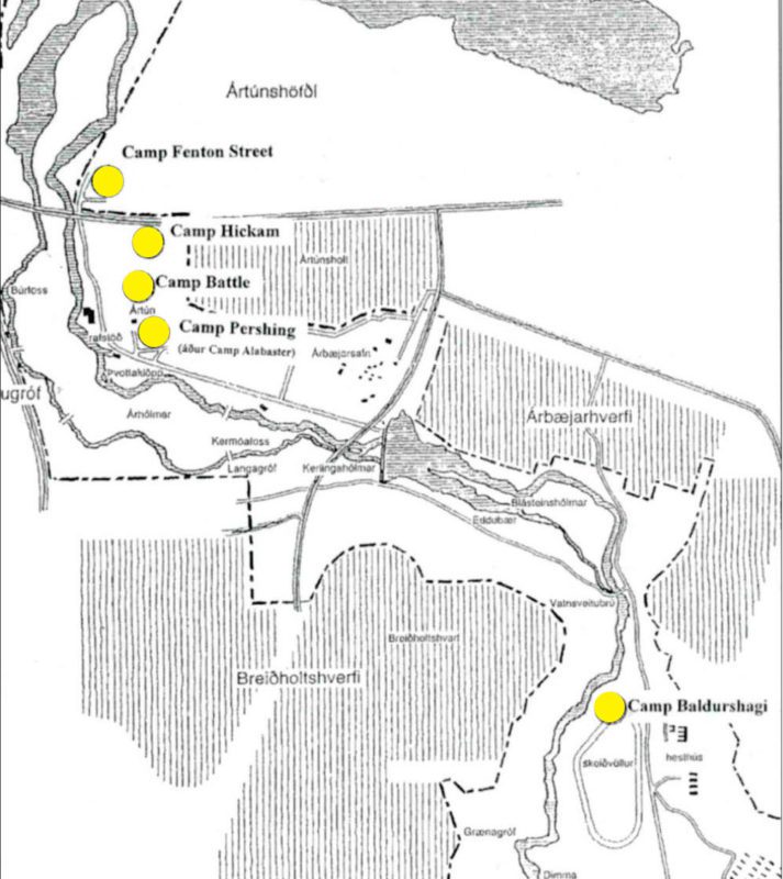Herbúðir (kampar) bandamanna í Elliðaárdal